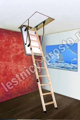 Максимально утеплённая чердачная лестница из массива сосны. Складная, трёхсекционная.