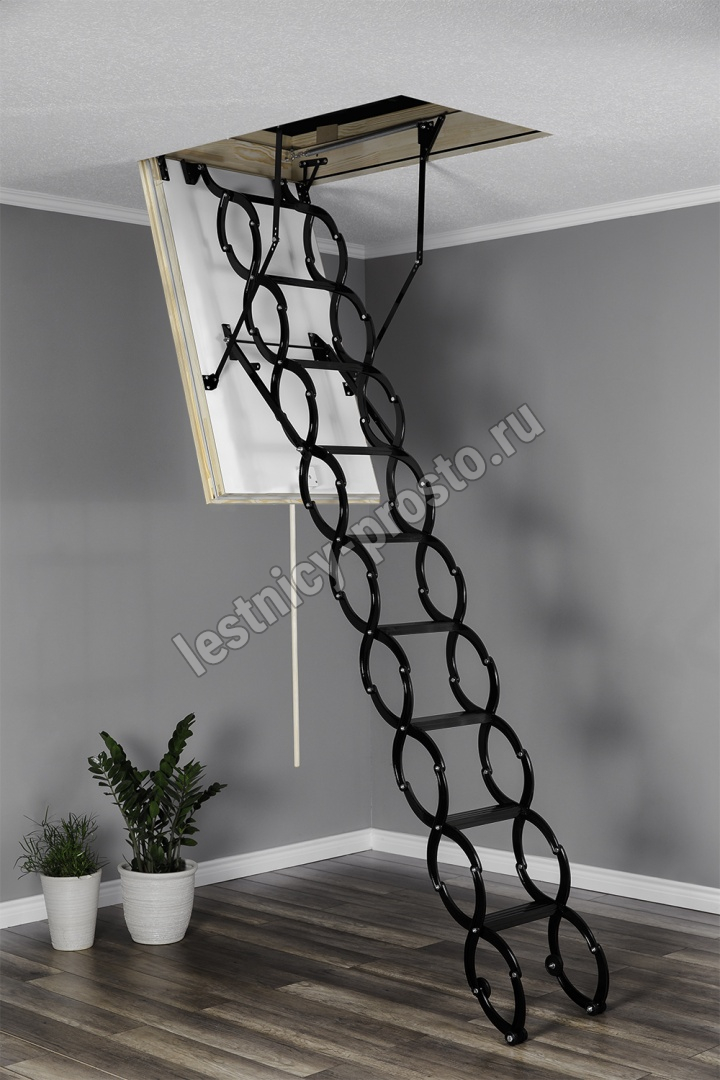 Модель лестницы, благодаря использованию цельнометаллической ножничной конструкции, идеально подходит для установки в помещениях высотой до 290 см. Выбор лестницы NOZYCOWE TERMO SUPER - это инвестиция, которая позволяет минимизировать потери теплого воздуха  и значительно снизить расходы на отопление.