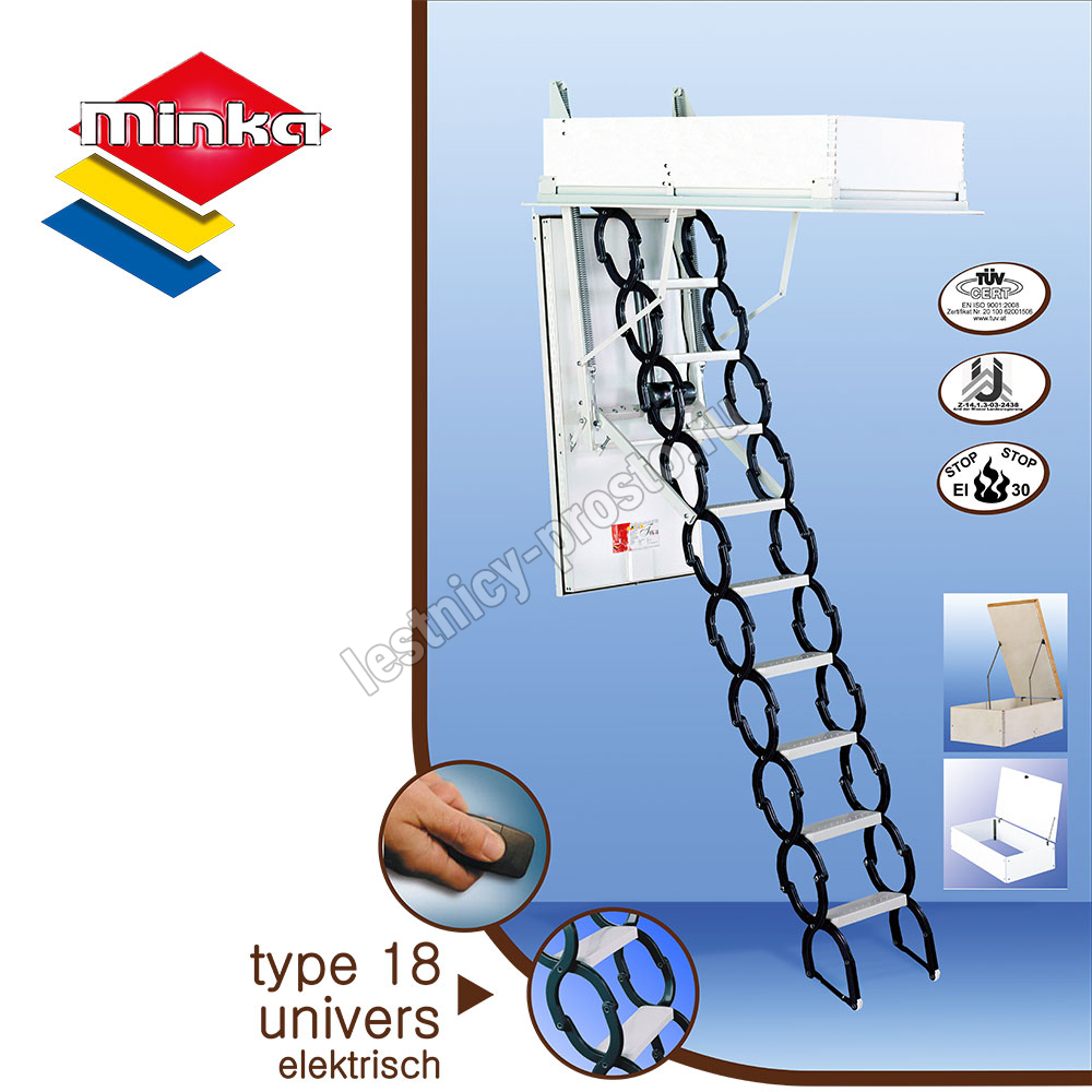 Чердачная ножничная лестница с электроприводом MINKA TYPE 18 UNIVERSE