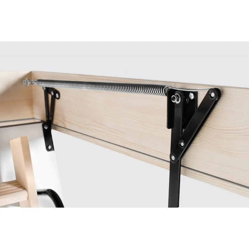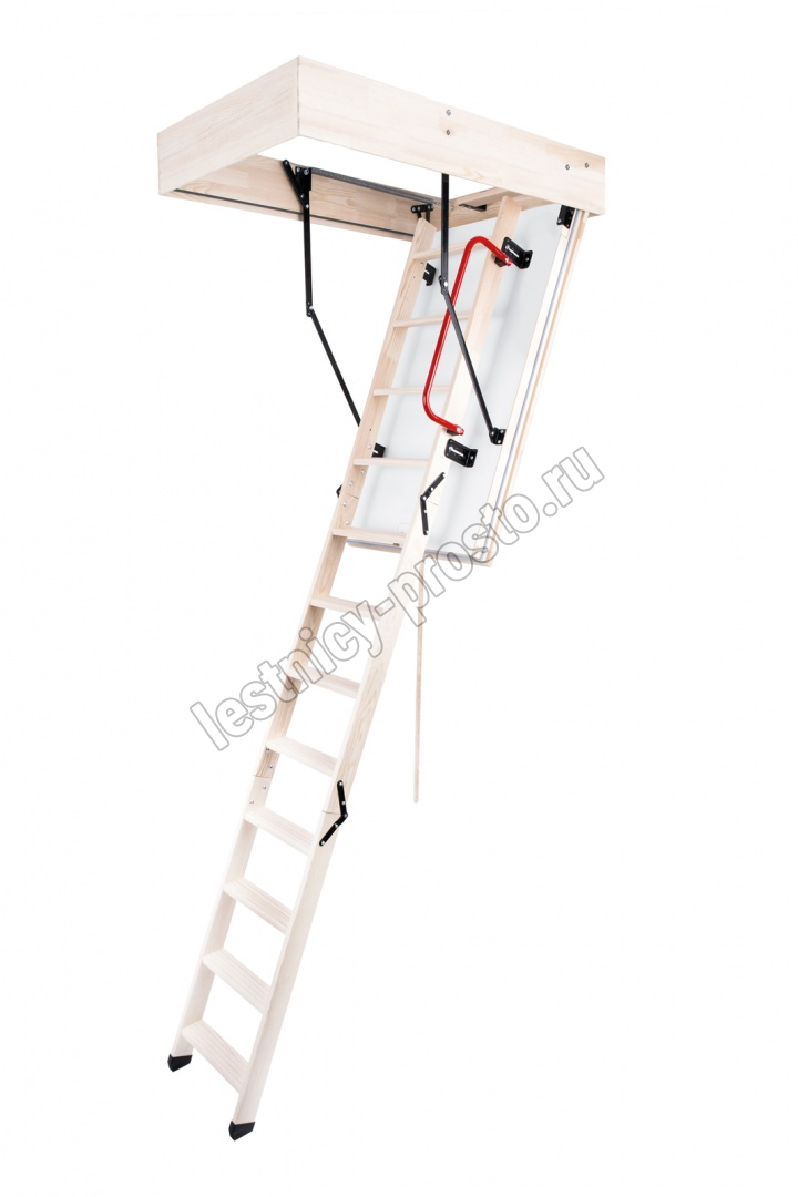 Максимально утеплённая чердачная лестница из массива сосны высокого качества. Складная, трёхсекционная (до 280 см) или четырехсекционная (до 335 см).