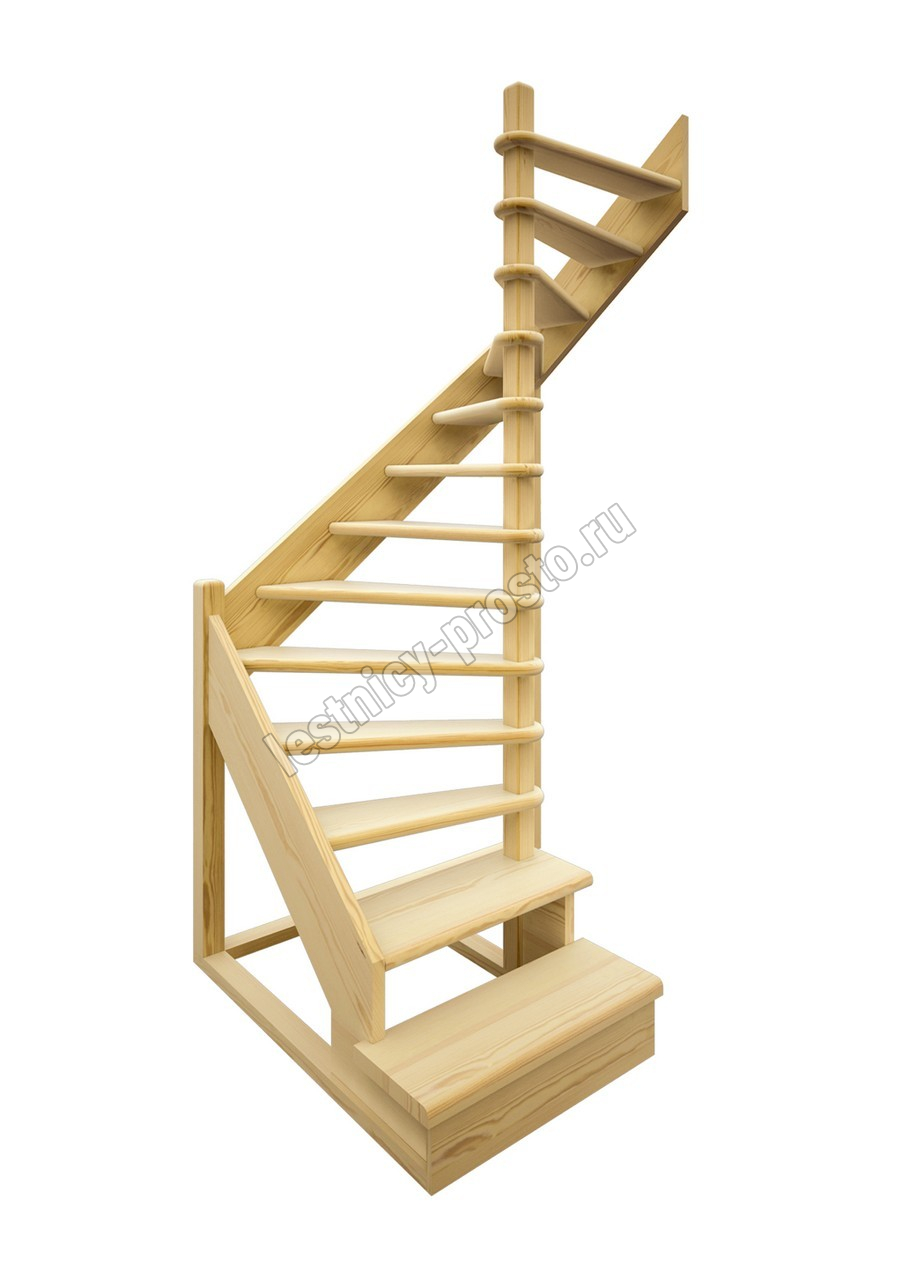 Деревянная межэтажная лестница ЛЕС-01 2525-2720 проем 1640-900, Сосна