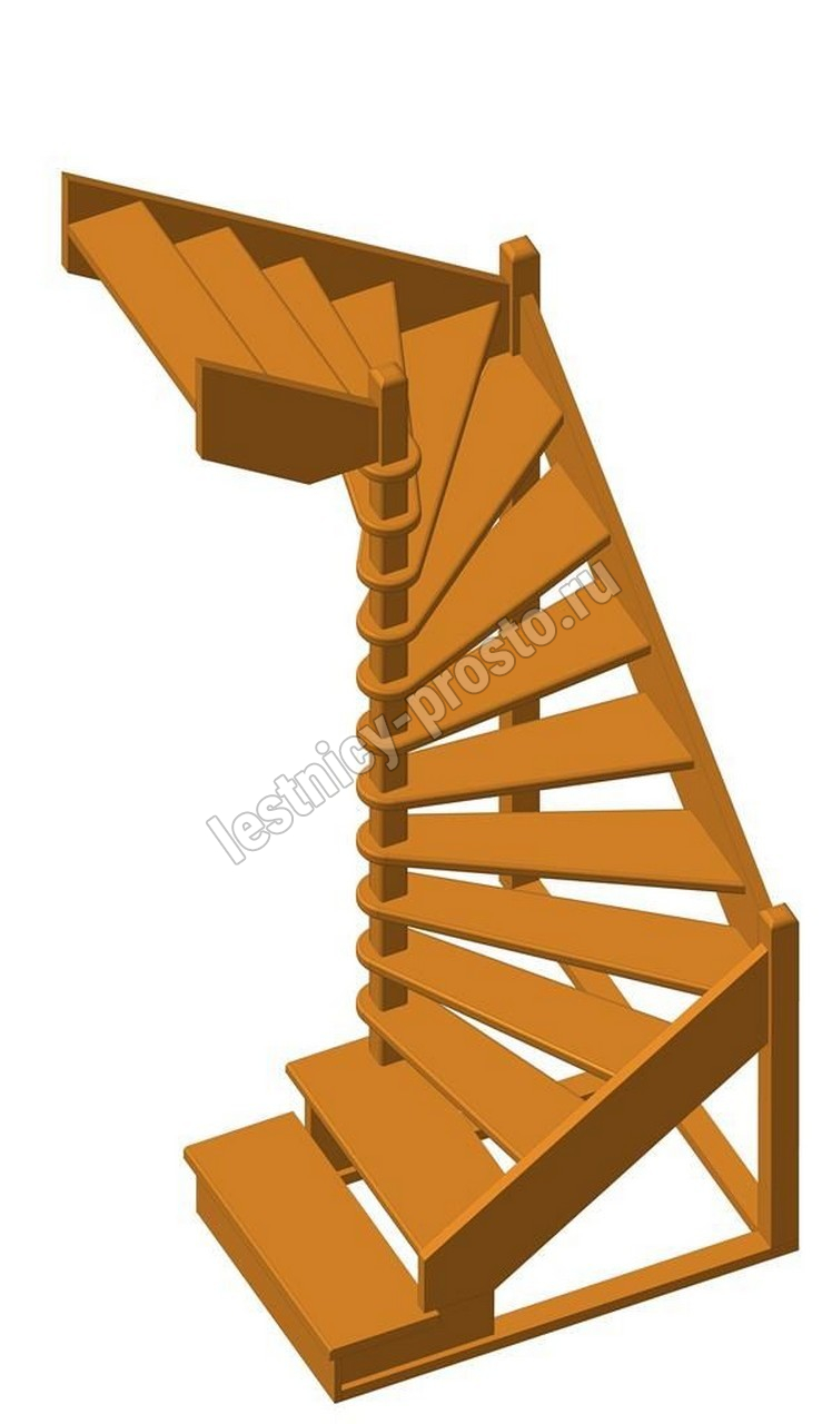 Деревянная межэтажная лестница ЛЕС-01 2915-3075 проем 1630-1370, Лиственница