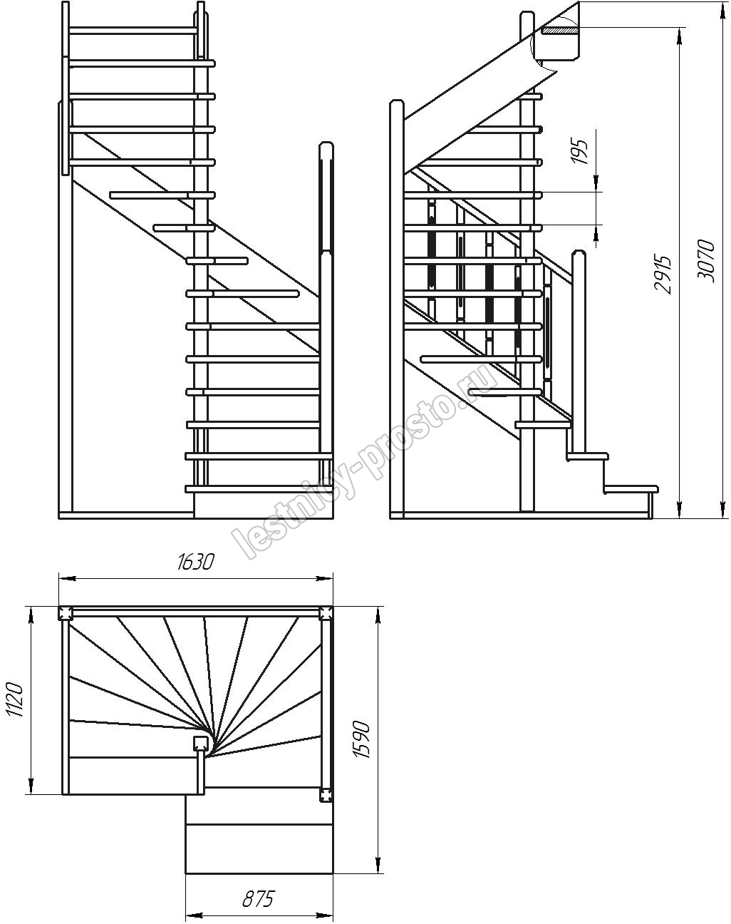 Высота лестницы 2915 - 3075 мм