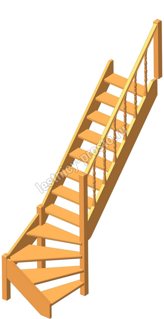 Деревянная межэтажная лестница ЛЕС-07 2470-2675 проем 2360-830, Бук