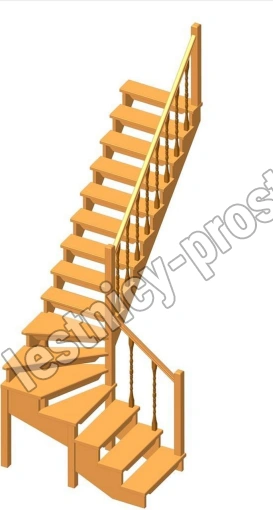 Деревянная межэтажная лестница ЛЕС-09 3310 проем 2800-900, Сосна