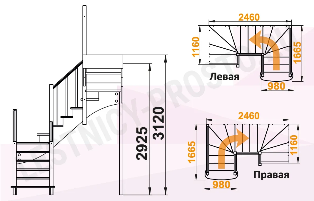 Высота лестницы 2925 - 3120