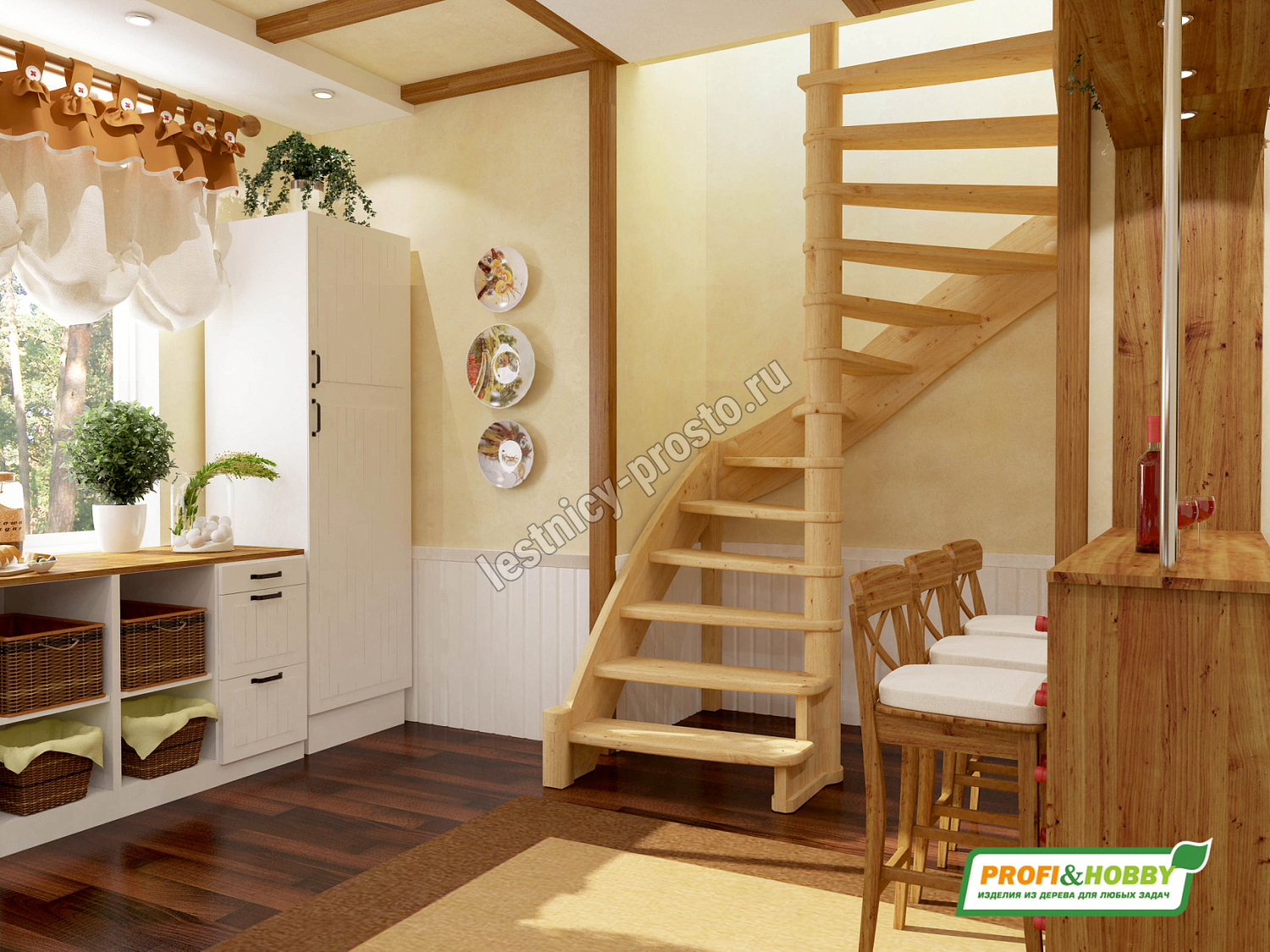 Компактная удобная лестница. Идеальна для небольших помещений.