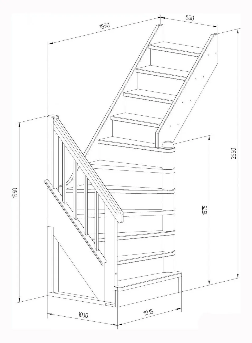 Компактная комфортная лестница с подступенками. Базовый комплект включает в себя деревянные элементы лестницы без какого-либо покрытия. Лестница поставляется в разобранном виде.