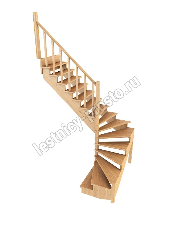 Ступени и поручень лестницы изготовлены из сращенного бука; тетивы, столбы, балясины - из сосны. Возможно изготовление данной модели полностью из бука. Базовый комплект включает в себя деревянные элементы лестницы и ограждения без какого-либо покрытия.