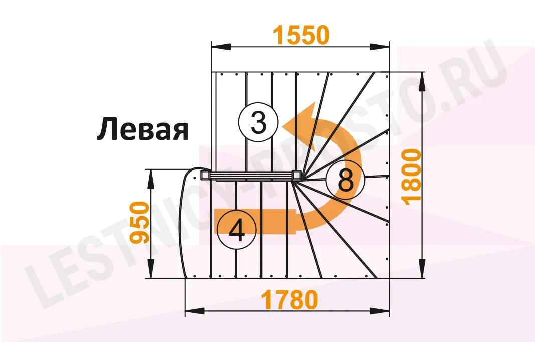Схема лестницы К-003М/1 с поворотом налево