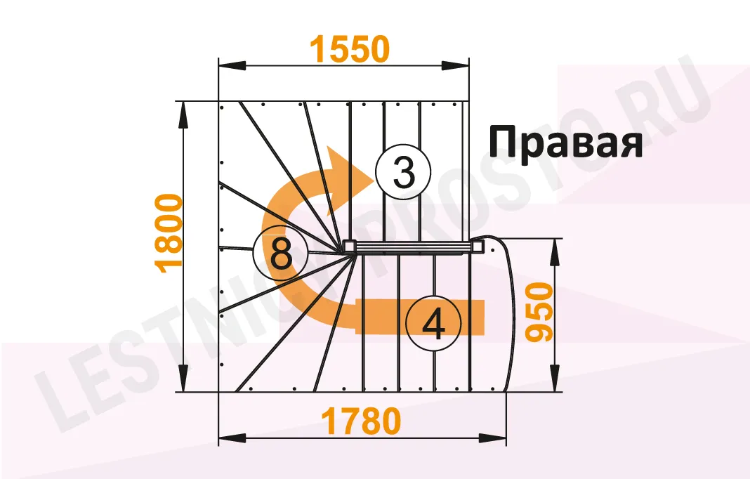 Схема лестницы К-003М/1 с поворотом направо
