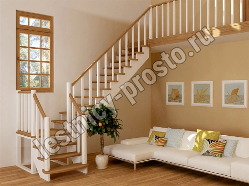 Ступени и поручень лестницы изготовлены из дуба, остальные элементы из сосны.