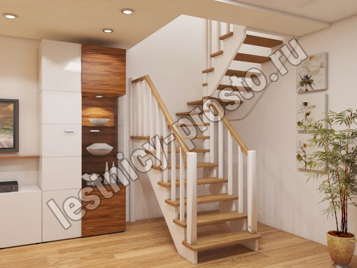 Ступени и поручень лестницы изготовлены из дуба, остальные элементы из сосны.