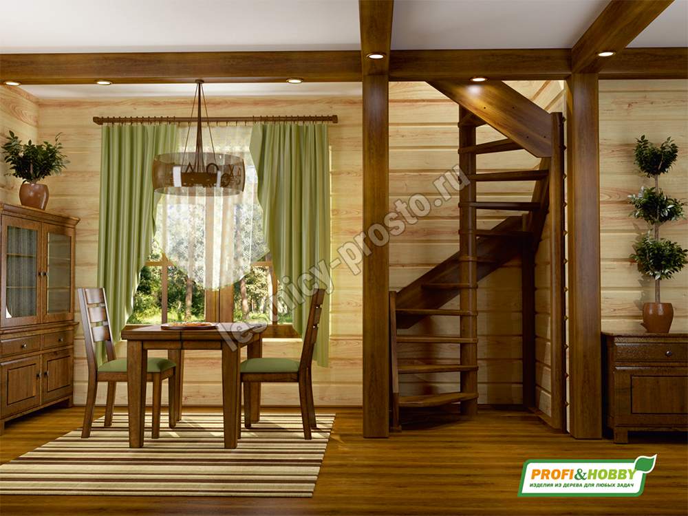 Ступени и поручень лестницы изготовлены из дуба, остальные элементы из сосны.