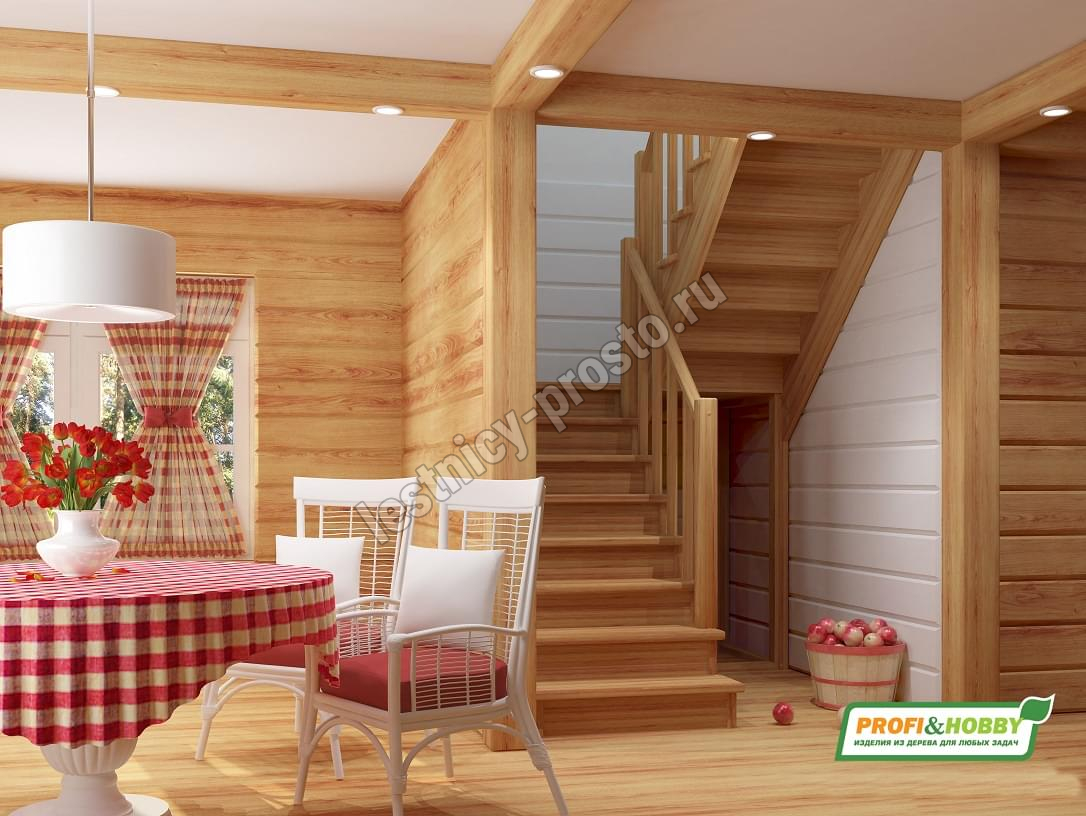 Обратите внимание! Данный вариант лестницы изготовлен из сосны эконом-класса, имеющей заметные серые/синие вкрапления цвета - это не отражается на прочности лестницы, но может быть заметно при покраске в светлые тона.