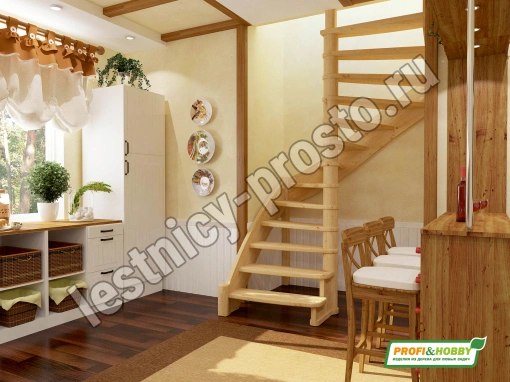 В производстве лестницы ЛС-01м под покраску используется сосна с небольшими изменениями цвета, что практически не влияет на ее механические свойства и почти незаметно при покраске в темные цвета. Базовый комплект включает в себя деревянные элементы лестницы без какого-либо покрытия.