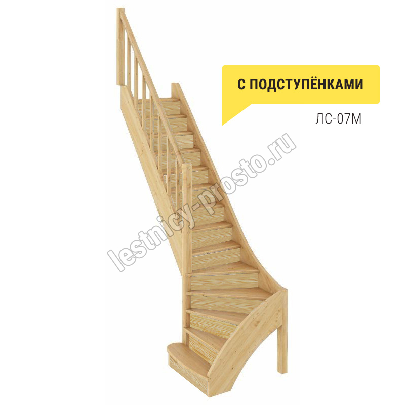 Базовый комплект включает в себя деревянные элементы лестницы с подступёнками и ограждения без какого-либо покрытия.