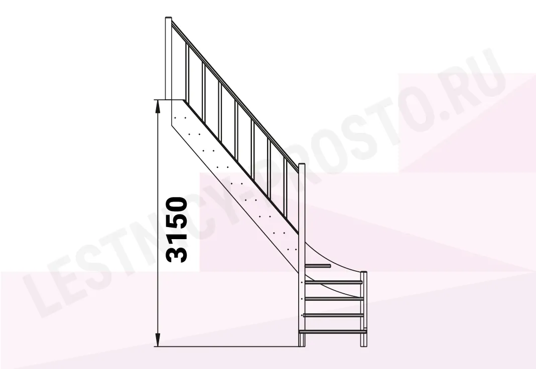 Базовый комплект включает в себя деревянные элементы лестницы и ограждения без какого-либо покрытия.