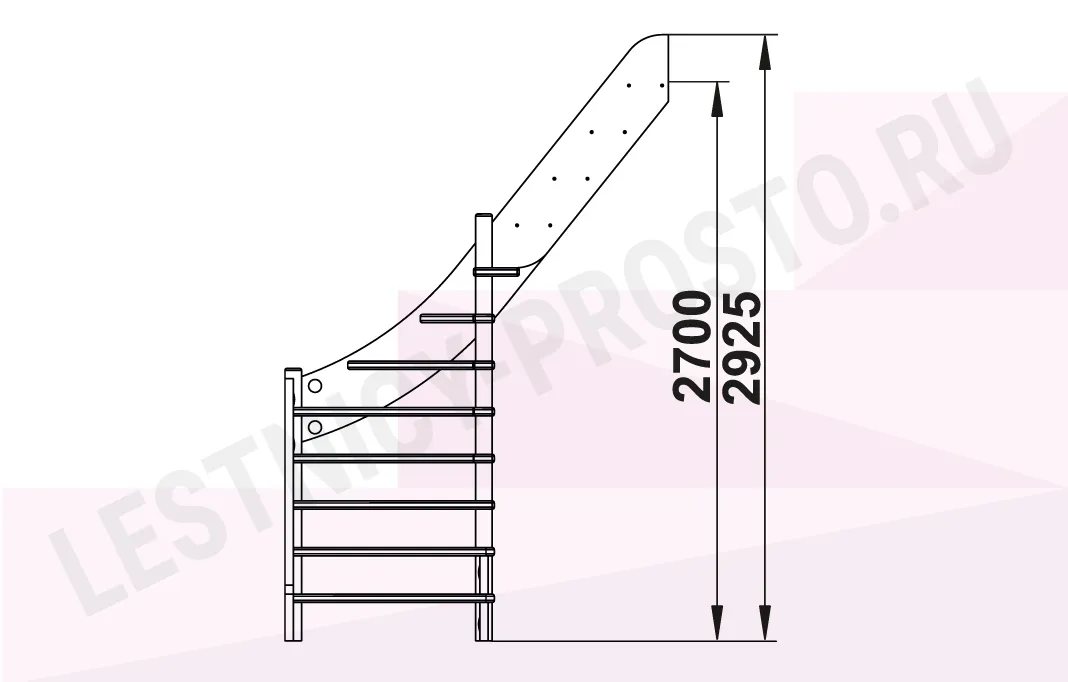 Схема лестницы ЛС-92М/2 с поворотом налево