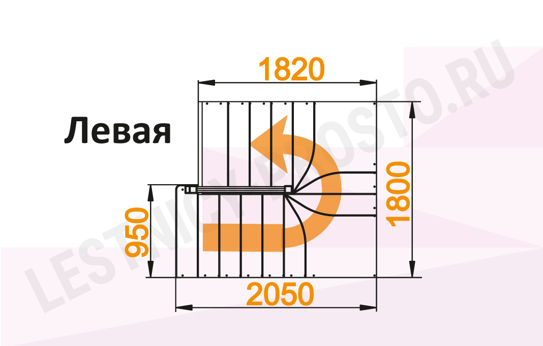 Ограждение лестницы с одной стороны. Базовый комплект включает в себя деревянные элементы лестницы и ограждения без какого-либо покрытия.