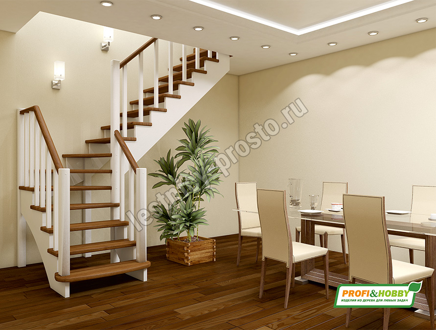 Ступени и поручень лестницы изготовлены из ясеня, остальные элементы из сосны.