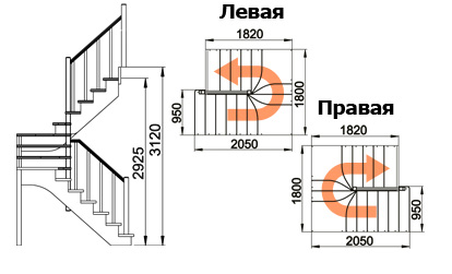 Ограждение у лестницы с обеих сторон (снизу до поворота)