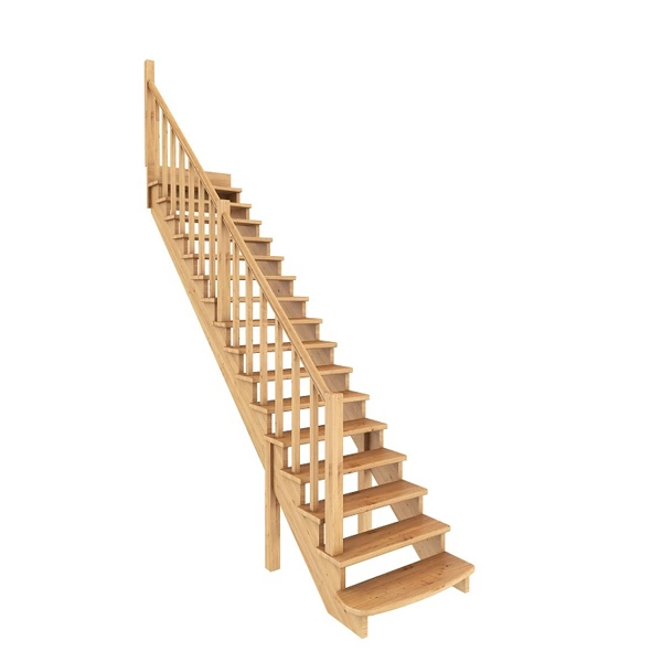 Базовый комплект включает в себя деревянные элементы лестницы и ограждения без какого-либо покрытия.