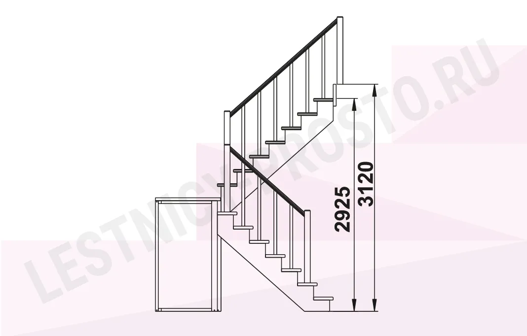 Базовый комплект включает в себя элементы лестницы с подступёнками и ограждения без какого-либо покрытия.