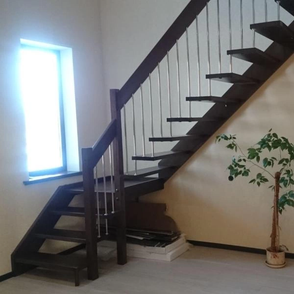 Надёжная современная лестница выполнена по немецкой технологии. Стоимость указана для лестницы с ограждением (с одной стороны); Поставляется в разобранном виде, в комплекте необходимый крепёж; Лестницу можно собрать самостоятельно; Так же, вы можете заказать услугу монтажа нашими специалистами; 4 вида породы дерева для изготовления лестницы: сосна, бук, ясень, дуб; возможна комбинированная лестница: из сосны (ступени бук, ясень, дуб); Деревянные элементы без какого-либо покрытия, отшлифованы, готовы к покраске. За дополнительную плату, вы можете изменить любые параметры, а именно: увеличить глубину ступени; увеличить ширину марша до 900 мм. и выше; заказать подступенки к лестнице; заказать отделку перекрытия (между 1-м и 2-м этажами); изготовить дополнительный промежуточный марш; заказать ограждение 2-го этажа; покраска в любой цвет или несколько цветов или покрытие защитными средствами; дополнение балясины из нержавеющей стали деревянными элементами; покраска балясин из нержавеющей стали порошковой краской в цвет RAL.