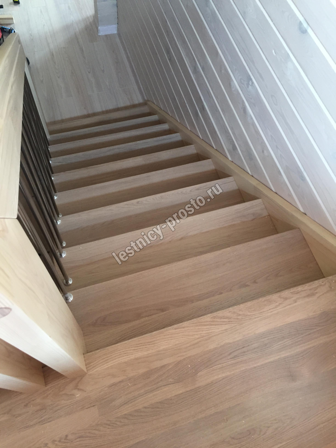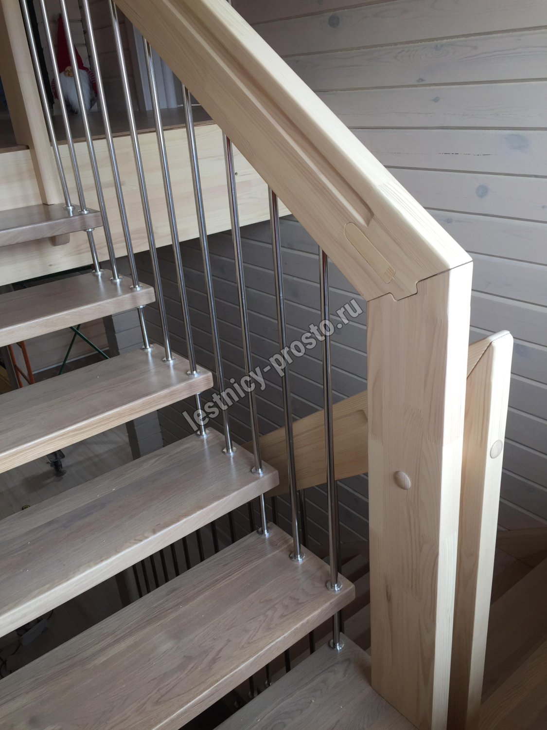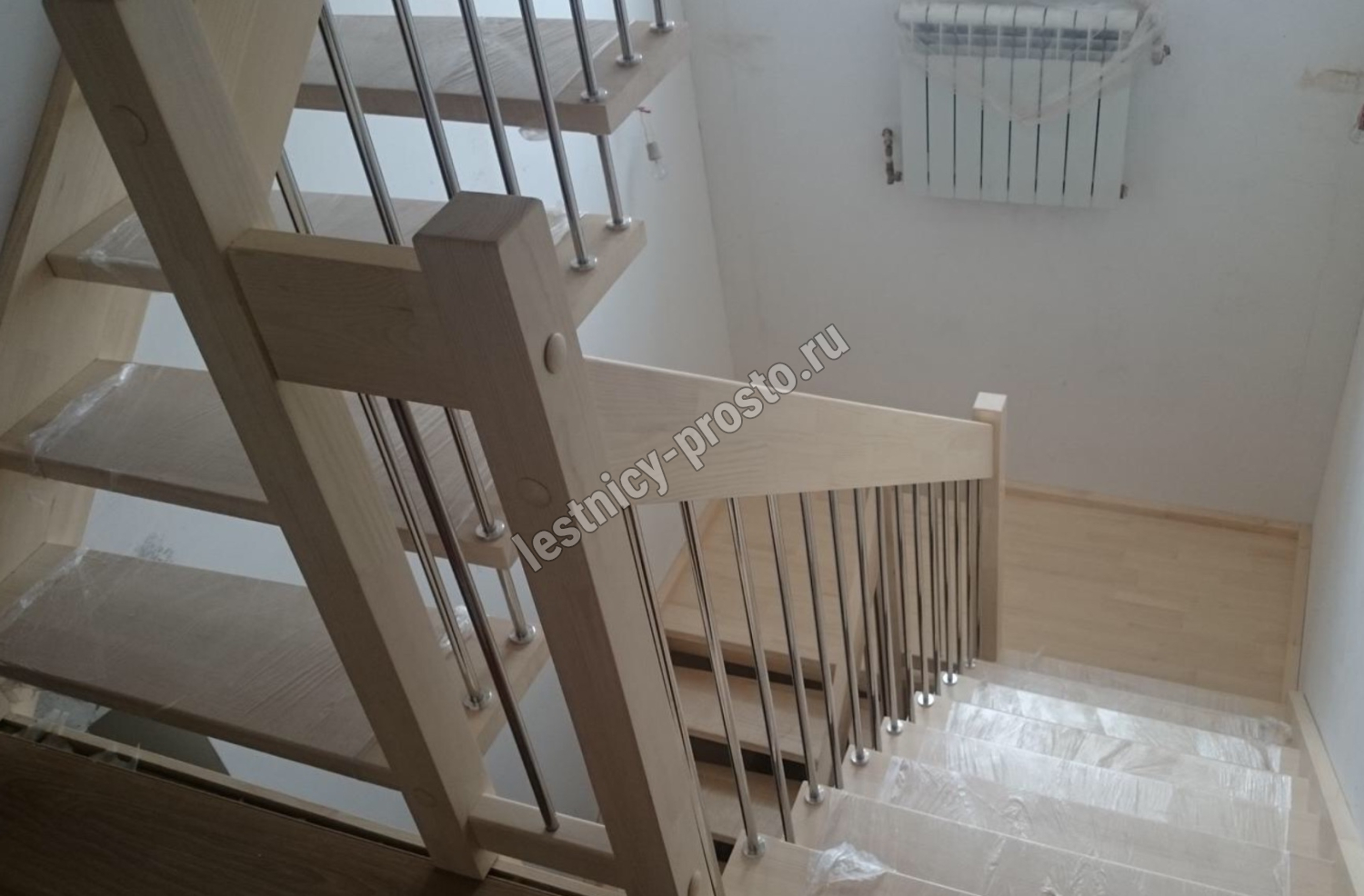 Надёжная современная лестница выполнена по немецкой технологии. Стоимость указана для лестницы с ограждением (с одной стороны); Поставляется в разобранном виде, в комплекте необходимый крепёж; Лестницу можно собрать самостоятельно; Так же, вы можете заказать услугу монтажа нашими специалистами; 4 вида породы дерева для изготовления лестницы: сосна, бук, ясень, дуб; возможна комбинированная лестница: из сосны (ступени бук, ясень, дуб); Деревянные элементы без какого-либо покрытия, отшлифованы, готовы к покраске. За дополнительную плату, вы можете изменить любые параметры, а именно: увеличить глубину ступени; увеличить ширину марша до 900 мм. и выше; заказать подступенки к лестнице; заказать отделку перекрытия (между 1-м и 2-м этажами); изготовить дополнительный промежуточный марш; заказать ограждение 2-го этажа; покраска в любой цвет или несколько цветов или покрытие защитными средствами; дополнение балясины из нержавеющей стали деревянными элементами; покраска балясин из нержавеющей стали порошковой краской в цвет RAL.