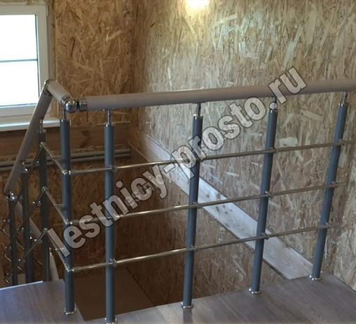 Ограждение для П-образной лестницы PROSTO DUE/DOUBLEс крашеными стойками и струнами