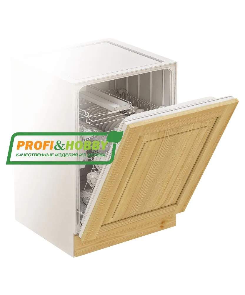 Фасад для посудомоечной машины изготовлен из 100% массива дерева, без шпона и без МДФ/ДСП.
