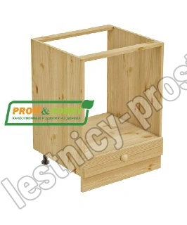 Тумба под духовку 600 х 560 х 720 + выдвижной ящик, сосна, бесцветный акриловый лак