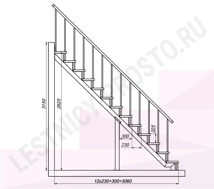 Лестница PROSTO MONO прямая, h315 см, ступени хвоя