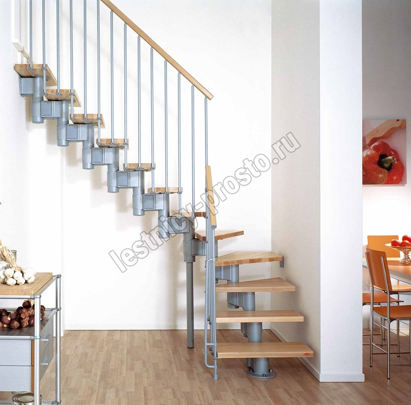 Красивая комфортная лестница с уникальной модульной конструкцией, которая позволяет собрать большое число модификаций, подходящих под ваш проём и другие условия помещения. Возможные варианты сборки лестницы смотрите в блоке "чертежи и схемы". При монтаже модульной лестницы KOMPACT, вы можете варьировать высоту шага и проступь, получив точную необходимую высоту и габариты. Лестница KOMPACT возможна в двух вариантах: с шириной марша 740 мм и 890 мм. Ступени выполнены из массива бука и покрыты качественным износостойким лаком. Базовая комплектация позволяет получить лестницу под высоты этажа в диапазоне 2250 - 3030 мм, кроме того, установив дополнительный комплект увеличения высоты, можно поднять высоту лестницы до 3730 мм. Каркас и стойки ограждения выполнены из пластифицированного металла.