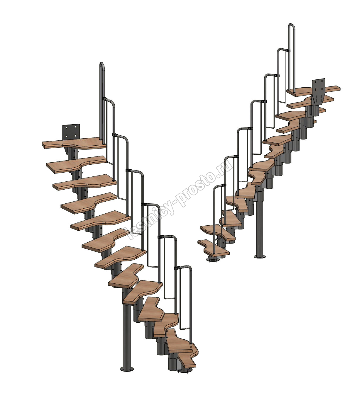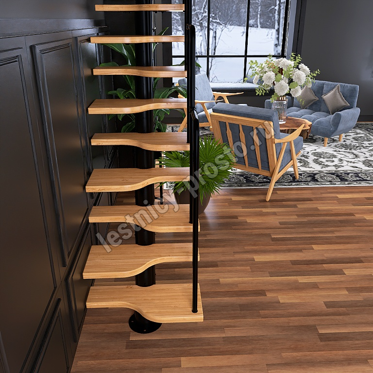 Лестница Prosto Urban Black гусиный шаг 700 мм, h234-336 см (13 ступеней), дуб