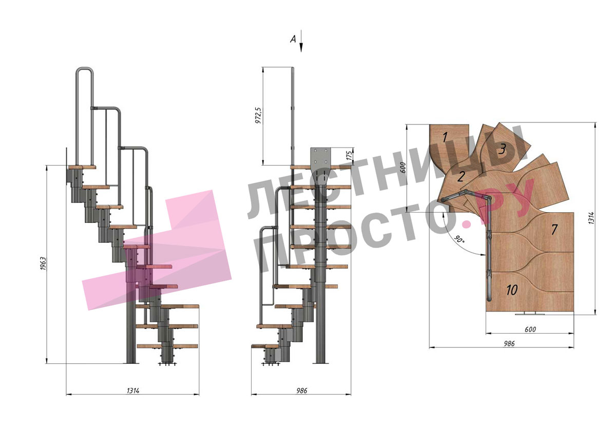 Высота лестницы 1800 - 2640 (10 ступеней) мм