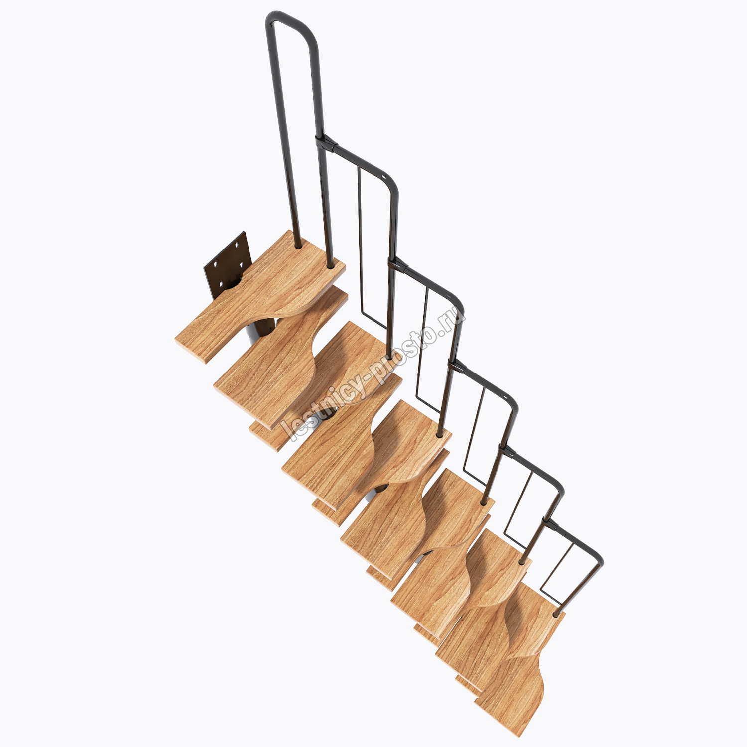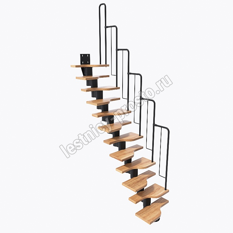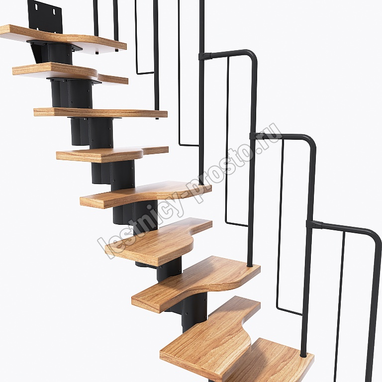 Лестница Prosto Urban Black гусиный шаг 600 мм, h198-288 см (11 ступеней), ясень