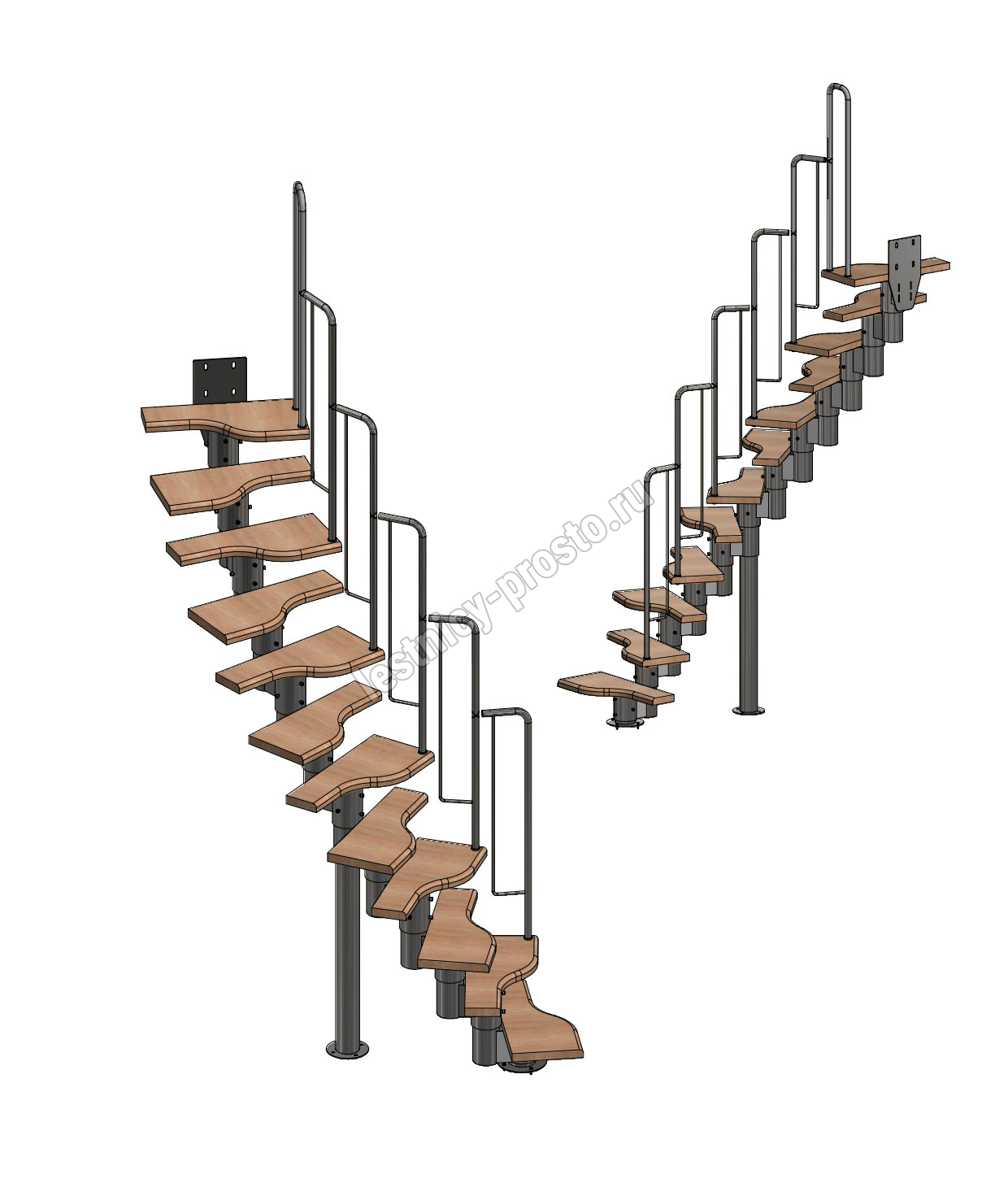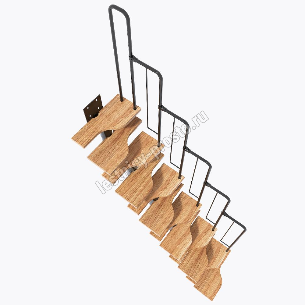Лестница Prosto Urban Black гусиный шаг 600 мм, h216-312 см (12 ступеней), ясень