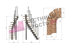 Высота лестницы 2160 - 3120 (12 ступеней) мм