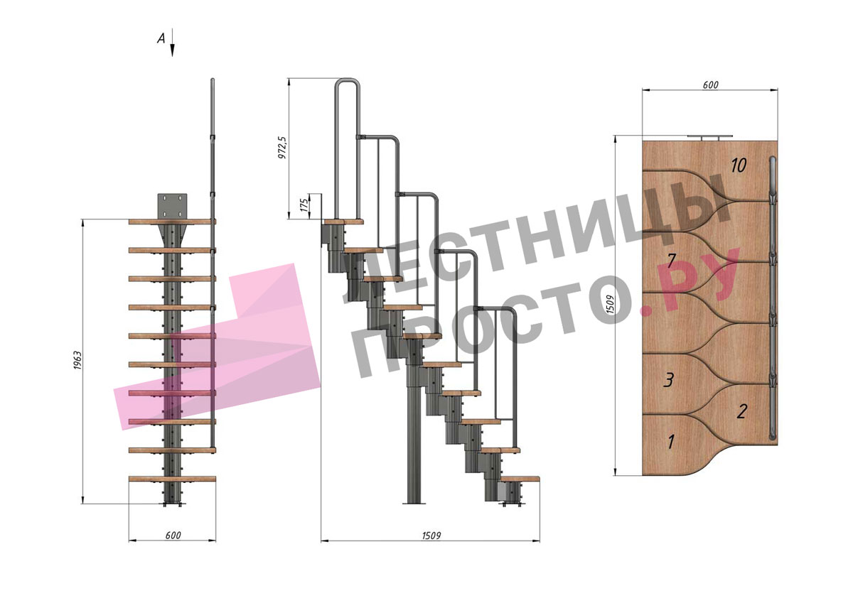 -Возможность установить лестницу как прямую, так и с поворотом внизу или вверху; при этом нужно понимать, что поворот менее удобен, чем прямой участок лестницы.