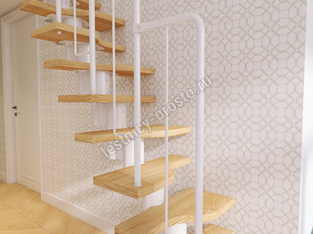 Лестница Prosto Urban White гусиный шаг 600 мм, h180-264 см (10 ступеней), ясень