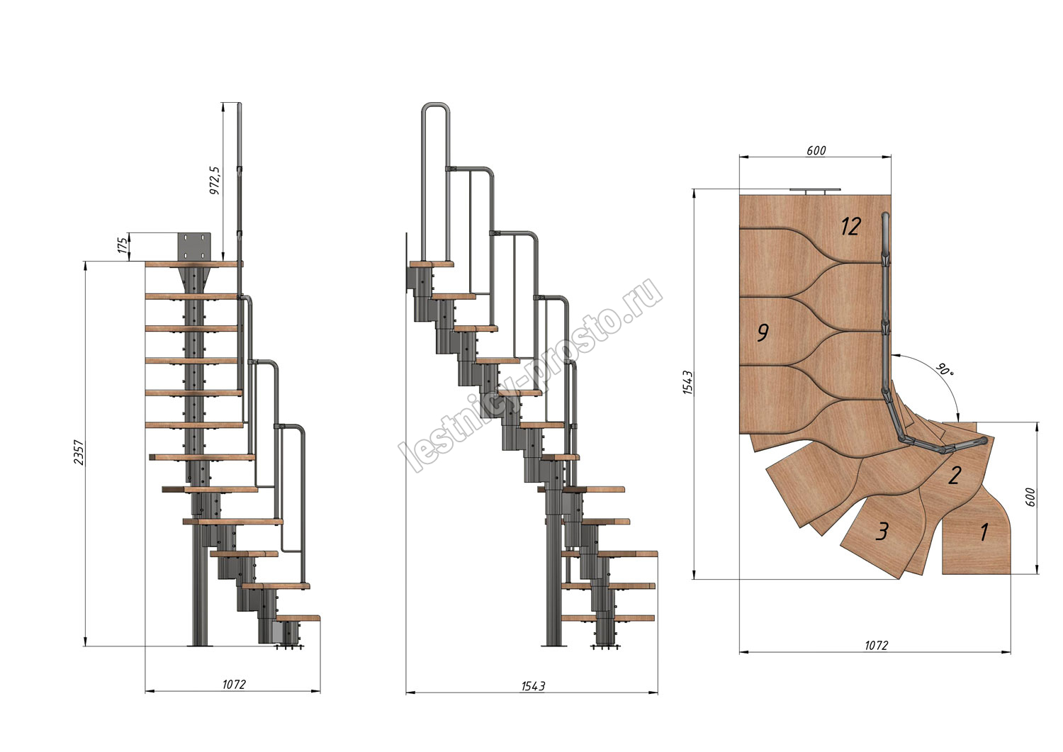 Высота лестницы 2160 - 3120 (12 ступеней) мм