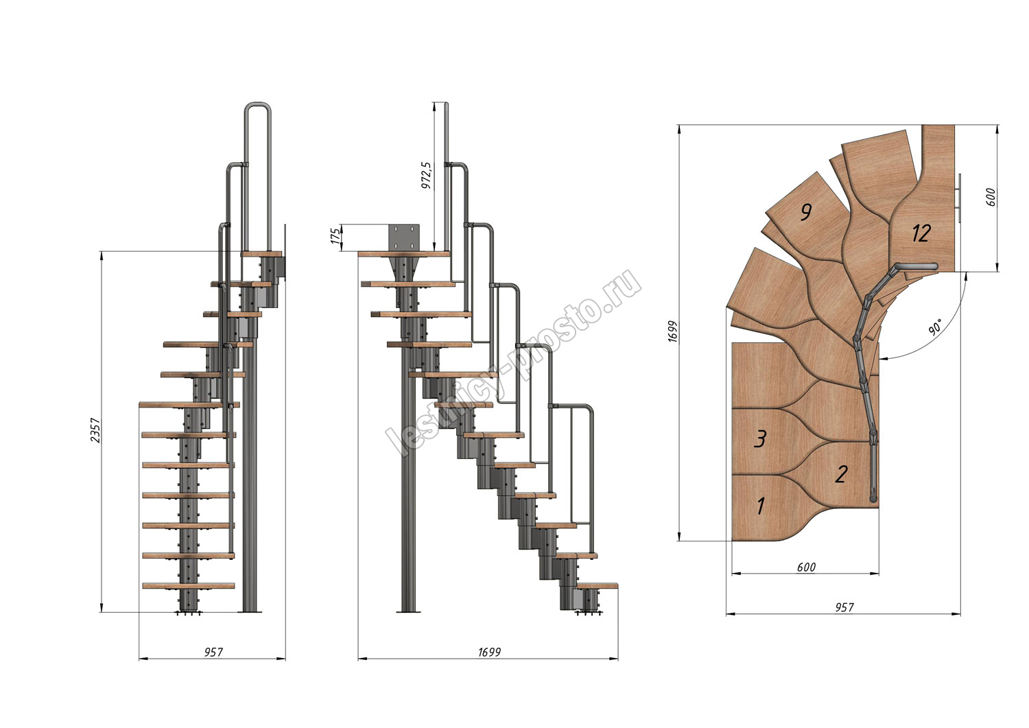 Высота лестницы 2160 - 3120 (12 ступеней) мм