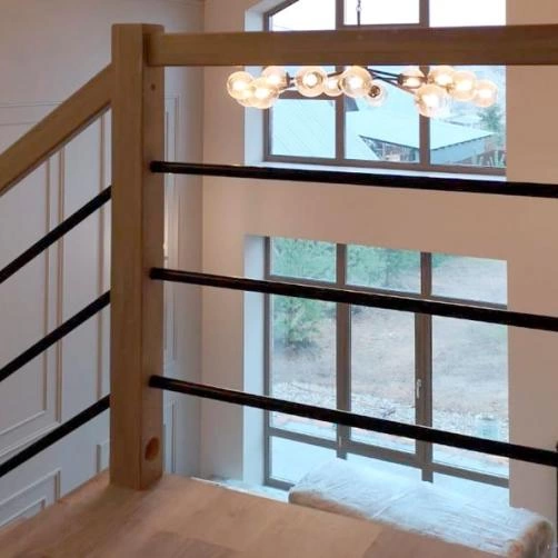 соответствует картинке, но вы не ограничены в его выборе. Лестницу можно приобрести и без ограждения, и с любым другим. Устанавливать на такую лестницу можно почти всё, начиная от классических деревянных балясин и заканчивая эксклюзивными коваными изделиями.