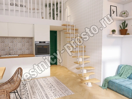 Лестница Prosto Urban White гусиный шаг 600 мм/ Ступени из срощенного ясеня