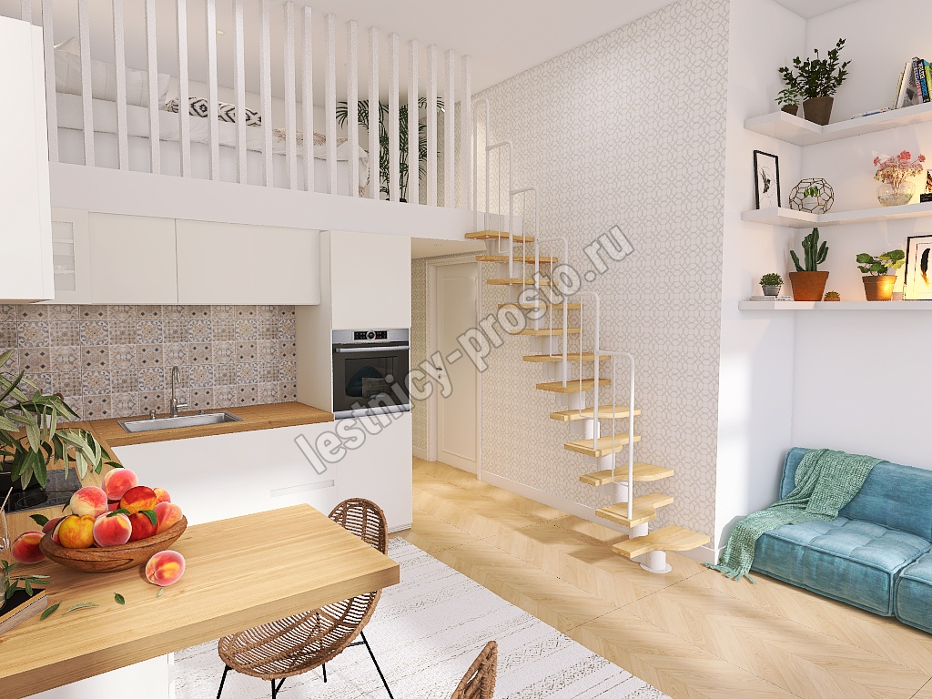 Лестница Prosto Urban White гусиный шаг 700 мм, h180-264 см (10 ступеней), ясень