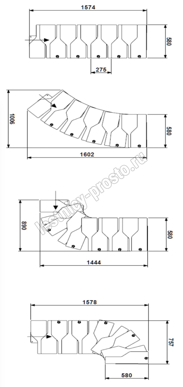 Модульность конструкции позволяет регулировать высоту лестницы при сборке и собрать необходимый поворот до 90 градусов. Ограждение устанавливается на любую сторону.