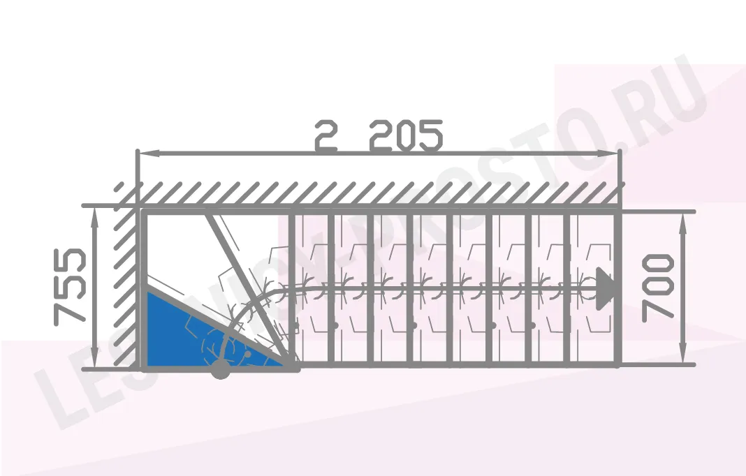 Есть возможность регулировать высоту ступеней. В комплект входят перила с вертикальными стойками и горизонтальными перегородками.