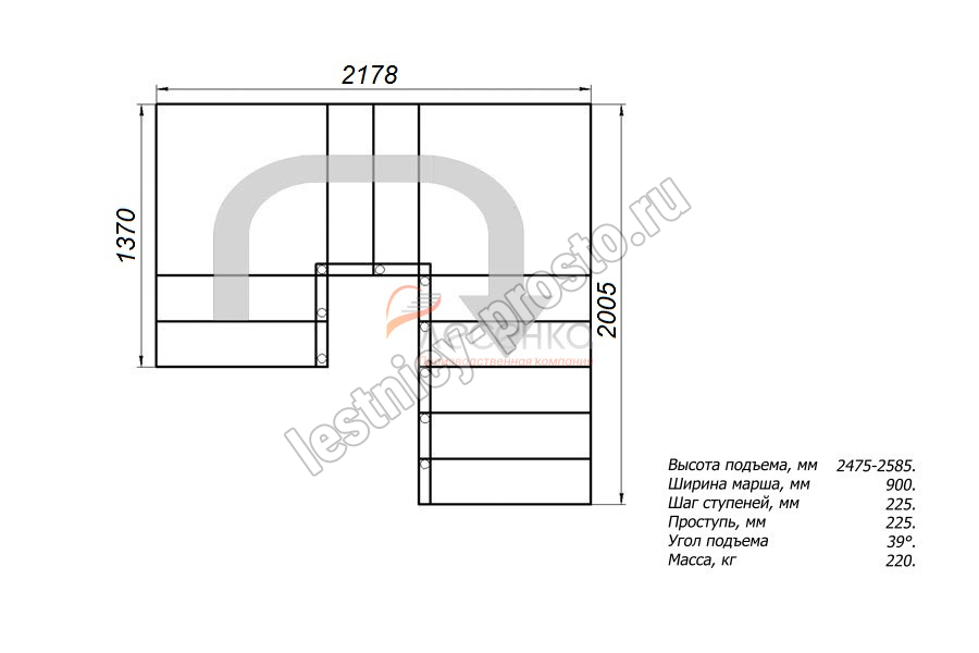Высота лестницы 2475 - 2585 мм